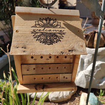 One-of-a-kind Quail Block Feeders, Bird Feeders, Patio Tables, Yard Logs, Yard Signs, Planters, Insect Pollinators, and Cactus Solar Lights.